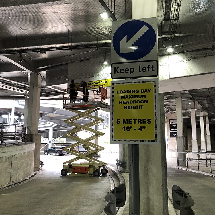 We completed a project in September 2019 to redesign and install new signage for the three main entrances to this large, prestigious shopping centre. The project also involved new heigh restriction safety signage within the centre’s loading. It was essential to the smooth operating of the centre that as little disruption as possible was caused to the centre’s visitors so the work on the malls was mainly carried out during the early hours.