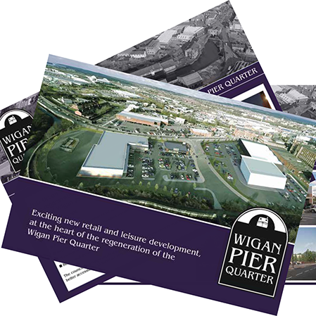 Working alongside Wigan Council, The Canals and Rivers Trust and the developers; H2O Urban we developed a brand identity for the project. We went onto to carry out aerial photography for the project and design and print a 16-page brochure as well as designing and producing large scale external signage for the site.